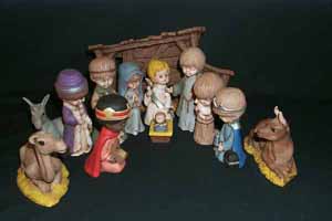 Children Nativity Set contains 13 pieces and is approximately 5 5/8" tall. Slip cast from commercial molds* and hand detailed.